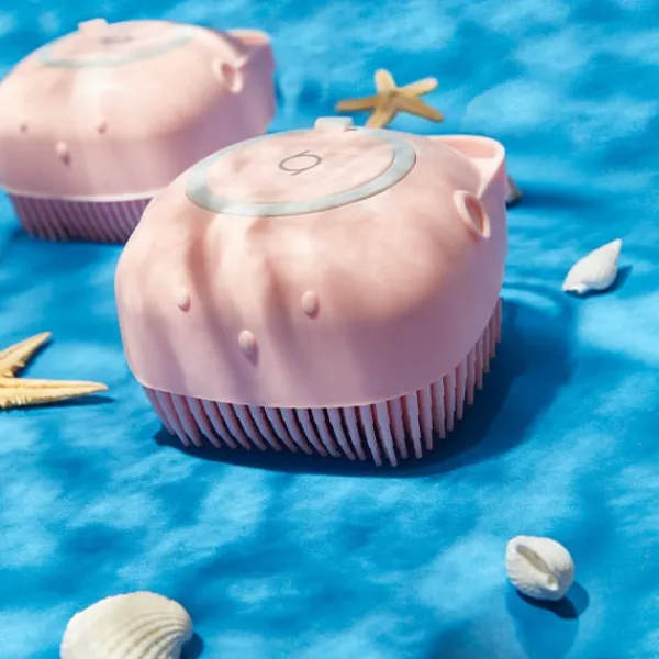Por un lado es un suave cepillo corporal con el que eliminarás las impurezas y exfoliarás tu piel durante el baño.
