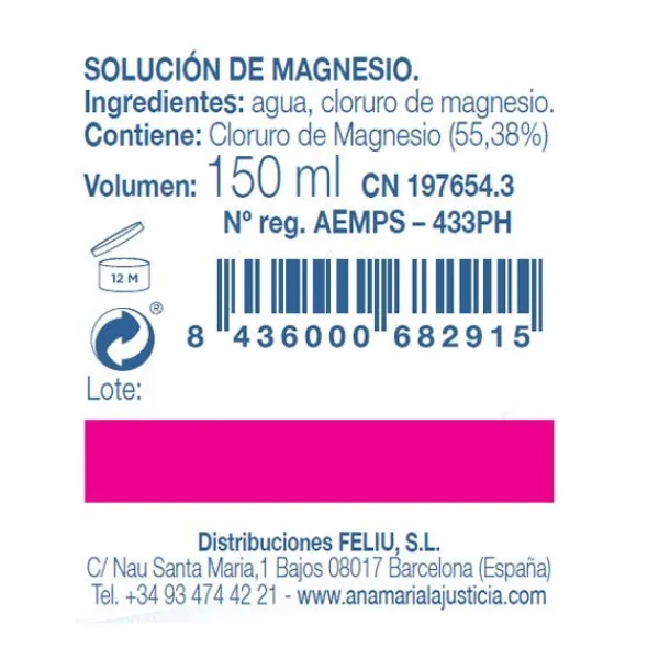 A partir de los conocimientos del papel del Magnesio en nuestro organismo, y gracias al amplio conocimiento de este mineral, en Ana Maria Lajusticia han elaborado un formato en spray de esta solución concentrada de cloruro de magnesio que favorece su aplicación en tratamientos locales.
