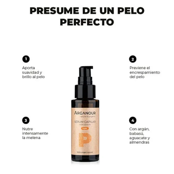Serum capilar con una textura ligera y seca diseñado especialmente para aportar suavidad y brillo inmediato al pelo.