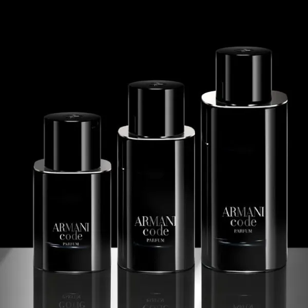 El nuevo frasco de ARMANI CODE PARFUM posee un toque de lujo moderno y masculino que se ha concebido como un objeto de deseo y duradero. Diseñado en un elegante color negro, el vidrio del frasco luce la innovadora forma cuadrada redondeada con una delicada base degradada. El tapón con el monograma de Giorgio Armani de ARMANI CODE PARFUM se cierra con un imán para intensificar la experiencia sensorial.