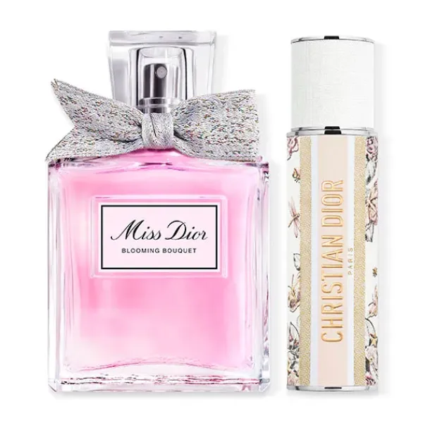 – Miss Dior Blooming Bouquet Vaporizador de Viaje en edición limitada, 10 ml. En una elegante tela que atestigua el espíritu couture de Miss Dior, este vaporizador de viaje recargable está precargado con la eau de toilette Miss Dior Blooming Bouquet.