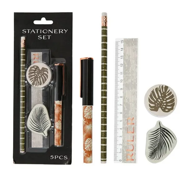 JUEGO DE PAPELERÍA DE 5 PIEZAS, LÍNEA CABAÑA B2S, QUE INCLUYE 1 LÁPIZ HB CON ENVOLTURA RETRÁCTIL 4C, POPLAR POPULUS, CHINA SHANDONG, FSC 100% MADERA, 1 BOLÍGRAFO DE 13 CM, 1 REGLA DE 150X28 MM CON ETIQUETA DE 4C, 1 AFILADOR DE DIÁMETRO DE 28 MM CON ETIQUETA DE 4C Y 1 PIEZA DE BORRADOR DE 55X22X10MM 4C IMPRESO. EMBALADO EN BLISTER CARTON, EMBALAJE CERTIFICADO FSC/ 95X23X250MM, Blíster Doble/Blíster Sandw PET (DBLC1): 1 x piezas de lápiz HB, álamo aspen, 1 x bolígrafo, polipropileno, 1 x piezas reglas, polipropileno, 150X28X1MM, 1 x sacapuntas, hierro, 28X28X28MM, 1 x pieza de goma de borrar, goma, 55X22X10MM