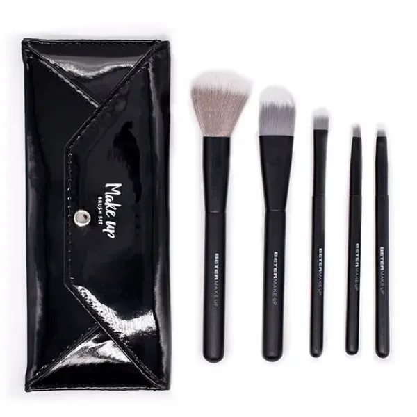 Estuche con 5 brochas y pinceles de pelo sintético.