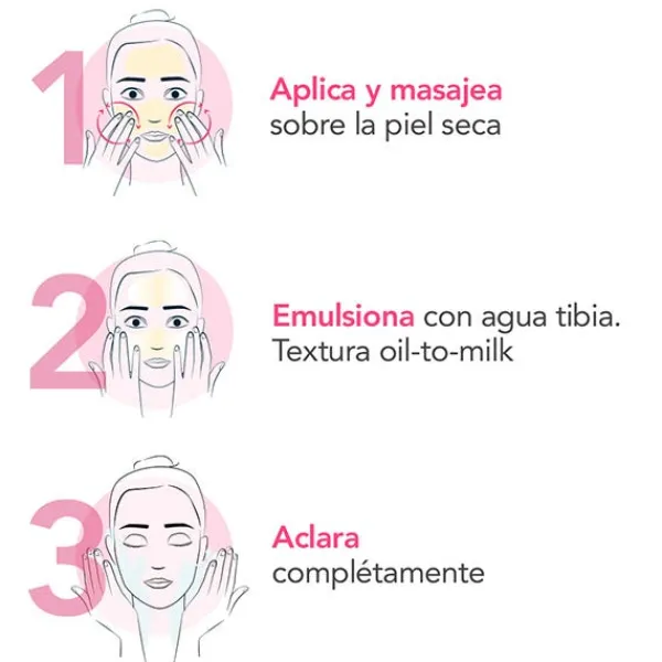 Textura oil-to-milk sin fricción que se desliza sobre la piel y proporciona una experiencia de limpieza sensorial. No emborrona la vista ni deja una película grasa en la piel.
