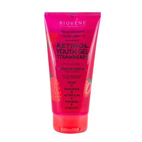 Gel extra-reafirmante para rostro y cuerpo elaborado con fresa orgánica* y Retinol rejuvenecedor que hidrata y nutre la piel al instante.