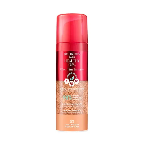 Desafía la opacidad y redescubre la luminosidad natural de tu piel con Bourjois Healthy Mix Glow Tint Essence. Esta revolucionaria fórmula combina la tecnología de pigmentos encapsulados con una mezcla de arándano con vitaminas para revitalizar tu cutis y potenciar su brillo natural. La base ligera proporciona una cobertura suave que minimiza la apariencia de los poros, reduce el enrojecimiento y crea un efecto de filtro luminoso, dejando la piel fresca y radiante.