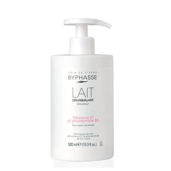 La leche desmaquillante Byphasse, sin colorantes, limpia con suavidad los restos de maquillaje sin ningún riesgo de irritación.