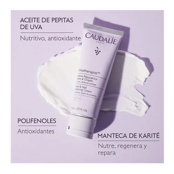 La Crema Reparadora de Manos y Uñas Vinotherapist™ nutre y repara las manos secas sin efecto graso, a la vez que las protege de la deshidratación y de las agresiones externas.