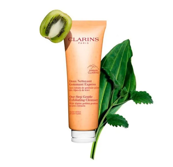 Este limpiador 3 en 1 está enriquecido con extractos de hierbas alpinas procedentes de la Hacienda Clarins y desmaquilla, limpia y exfolia todo tipo de pieles en un solo gesto a la vez que preserva el equilibrio cutáneo. Enriquecido con extractos de saponaria bio y kiwi bio, deja la piel limpia, fresca y radiante. El [Gentle Complex] de Clarins con extractos de genciana amarilla bio* y melisa bio* calma y suaviza la piel. Ce gel frais enrichi de micro-billes d’origine végétales se transforme en mousse fine et onctueuse. Un suave y ligero efecto peeling para lucir una piel suave y limpia tras el aclarado. Para reducir su huella medioambiental, Clarins ha rediseñado este producto con un tubo más ecológico gracias a su cápsula más ligera.