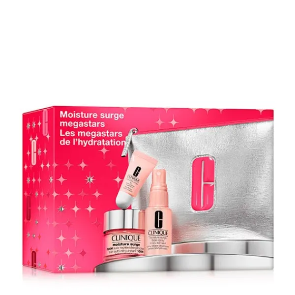 3 favoritos del cuidado de la piel para una hidratación radiante en todo el cuerpo, incluyendo nuestro hidratante más vendido Moisture Surge™ 100H en tamaño de venta.