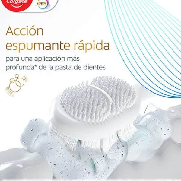 Cepilla tus dientes con el cepillo Colgate Espuma Limpiadora. Este cepillo manual ha sido diseñado específicamente para la prevención activa, ya que ayuda a combatir la causa principal¹ de las caries, la placa, los problemas de encías, el mal aliento, la acumulación de sarro y las manchas superficiales. Este cepillo de dientes proporciona una acción espumante rápida para una aplicación más profunda² de la pasta de dientes por toda la boca. Y gracias a sus filamentos de punta fina, este cepillo dental manual llega más profundamente² a lo largo de la línea de las encías y entre los dientes. Además tiene 2 veces más filamentos³ para una alta densidad. Consigue la prevención que necesitas para mantener tu sonrisa sana con Colgate.