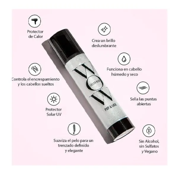 El suero brillante suaviza el encrespamiento, sella las puntas abiertas, evita que el color se desvanezca, tiene protección contra los rayos UV y es un potente protector del calor.
