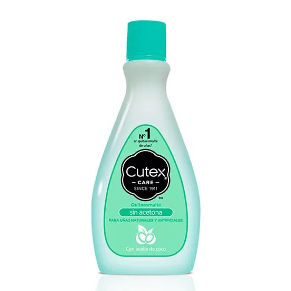 El quitaesmalte de uñas sin acetona de Cutex, enriquecido con aceite de coco, es seguro para usar en uñas naturales y artificiales gracias a su suavidad y cuidado.