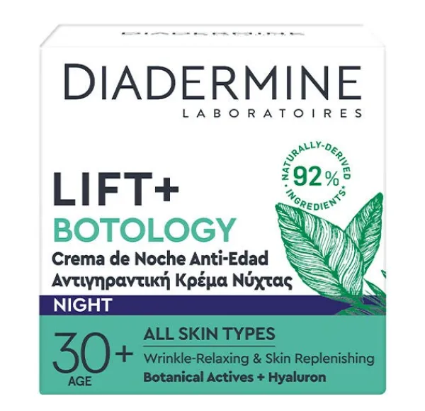 Lift+ Botology Crema de Noche Anti-Edad combina 92% de los ingredientes de origen natural con activos botánicos asegurando una alta tolerancia de la piel.