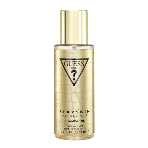 Sexy Skin Metalique Champagne es una colección de brumas unisex inspiradas en los cocteles más famosos. Su frasco está inspirado en los icónicos bolsos de la firma Guess, el pattern de cocodrilo le aporta ese glamour y lujo que caracteriza a la marca.