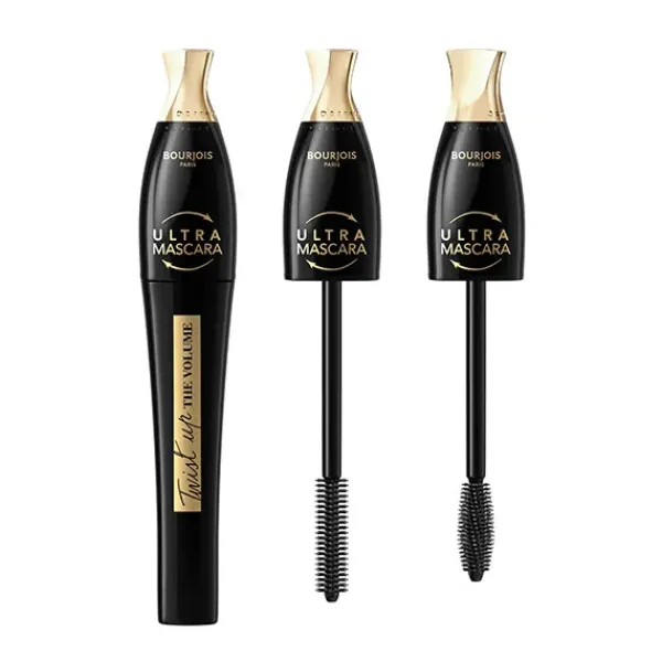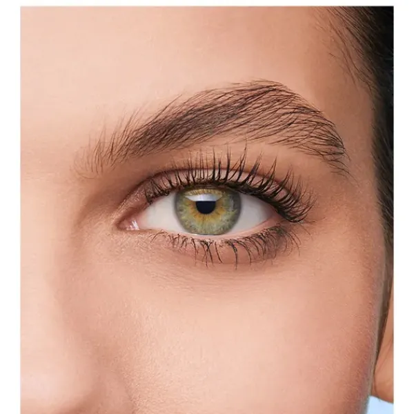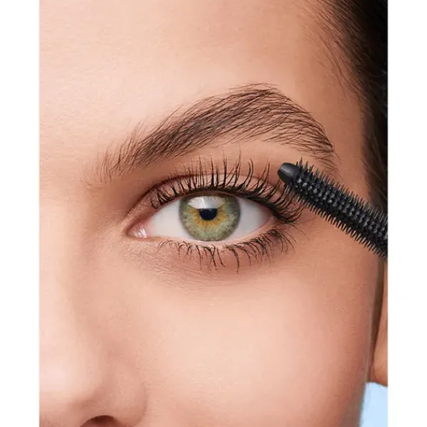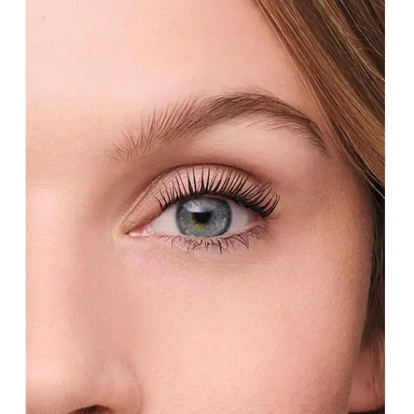 Máscara de pestañas con un cepillo con dos posiciones que hace que las pestañas sean más largas y voluminosas.