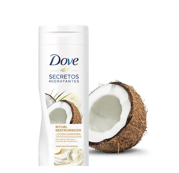 Loción corporal hidratante con aceite de coco y leche de almendras.