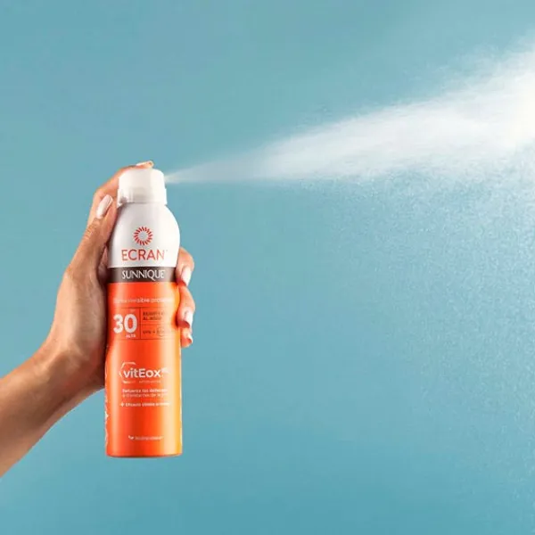 Proporciona una protección invisible e inmediata contra las quemaduras solares, incluso sobre piel mojada.