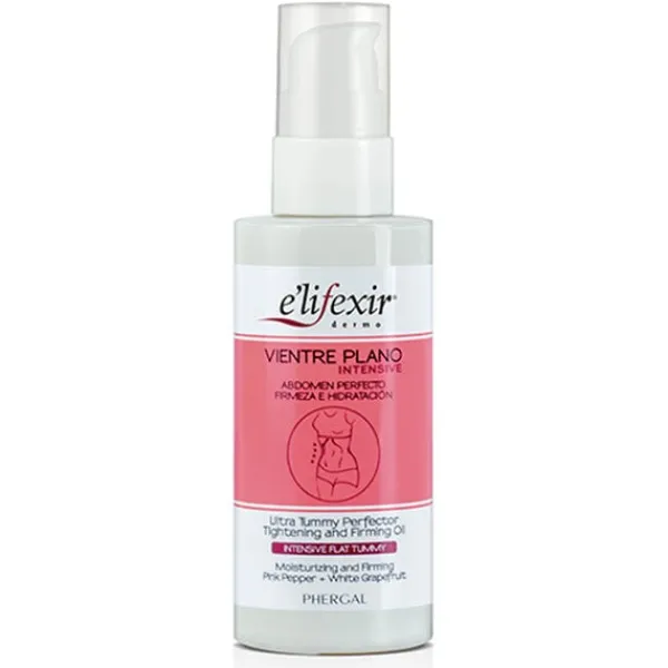 Elifexir Aceite Vientre Plano Intensive es un potente aceite adelgazante quema grasas con triple acción: remodela y reduce la zona abdominal, define, reafirma y nutre gracias a la combinación de sus poderosos activos de origen natural.