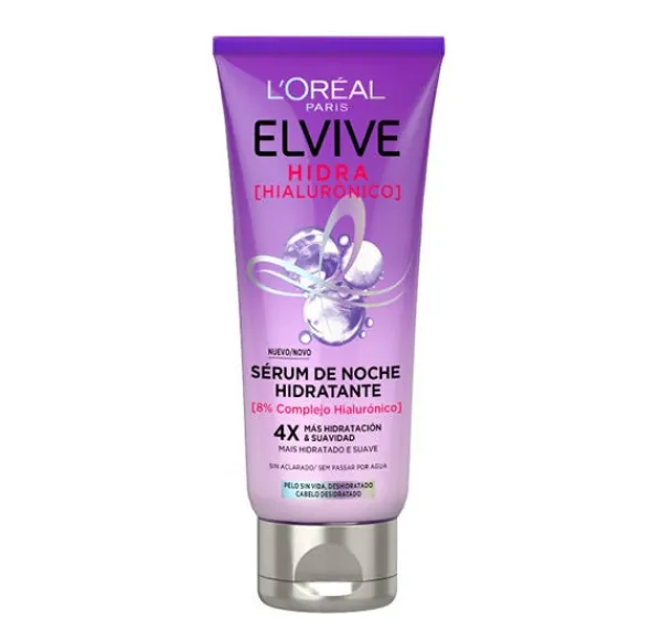 Nuevo Serum Hidratante de noche de Elvive hidra hialuronico formulado con 8% de complejo hialuronico para conseguir un pelo 4X mas hidratado de la noche a la mañana.