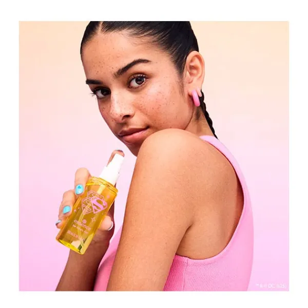 ¡Refresca y revitaliza mientras te desplazas con el spray refrescante para cabello y cuerpo Superman! de Essence Esta bruma compacta aporta un impulso instantáneo a tu cabello y cuerpo, dejando un aroma ligero, fresco y tropical basado en notas de piña y coco que duran. Perfecto para retoques durante todo el día, es tu mejor compañero de superhéroe para refrescarte rápidamente estés donde estés. Solo tienes que rociar sobre el cuerpo y el cabello, evitando la cara, y sentirte lista para conquistar el día.