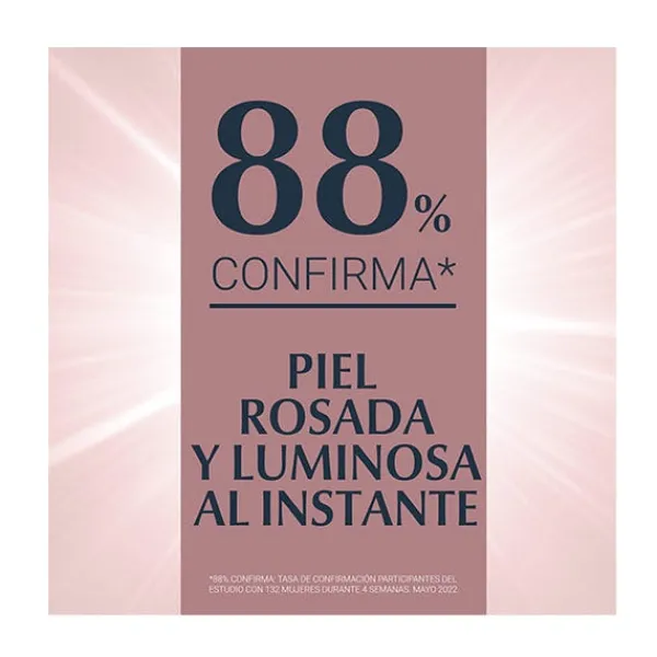 La fórmula aporta un tono rosado para contrarrestar el aspecto pálido y cansado de la piel, especialmente por la mañana.