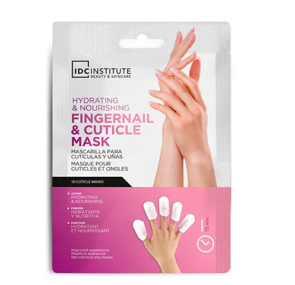 La mascarilla para dedos de IDC Institute es una mascarilla innovadora para los dedos de las manos con extracto de melocotón, ácido hialurónico y vitamina E, diseñada para hidratar y suavizar la piel de tus dedos y cutículas.