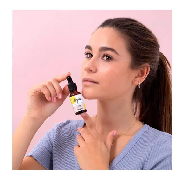 El aceite puro de Argán regenera y nutre la piel, ayudando a difuminar las pequeñas arrugas y marcas en la piel.