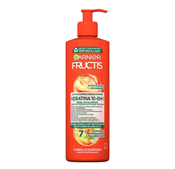 Descubre la revolución en cuidado capilar con nuestra Crema sin Aclarado 10-en-1 Adiós Daños de Garnier Fructis, diseñada para cabello dañado. Con una fórmula vegana, y un 7% de complejo reparador con keratina + Aceite de Marula , esta crema de 400ml ofrece una experiencia completa de reparación