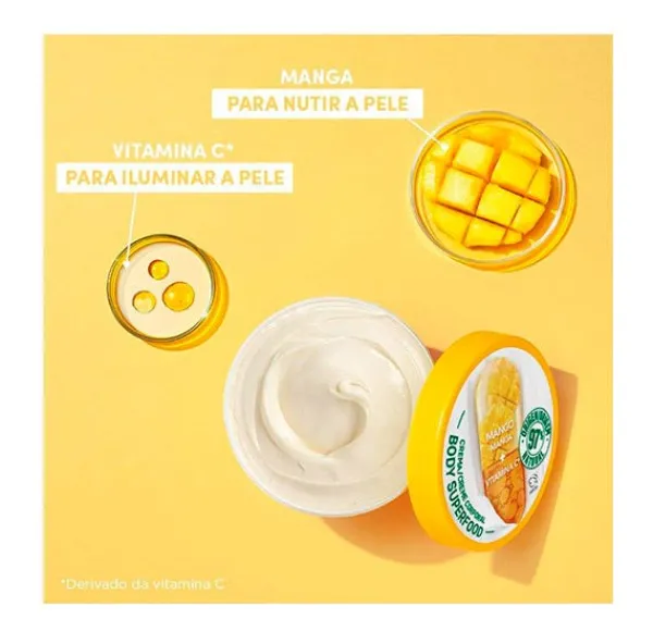 La crema corporal Garnier Body Superfood Mango + Vitamina C proporciona 48h de máxima hidratación y luminosidad a pieles secas y apagadas.