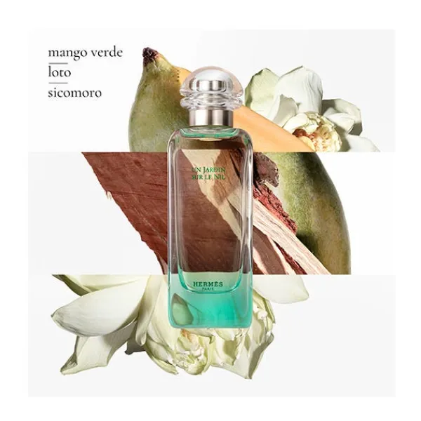 Esta fragancia es un jardín rebosante de vida, generoso y chispeante, donde los aromas del mango verde, la flor de loto y el cálamo aromático se entremezclan con las notas de incienso y madera de sicomoro.