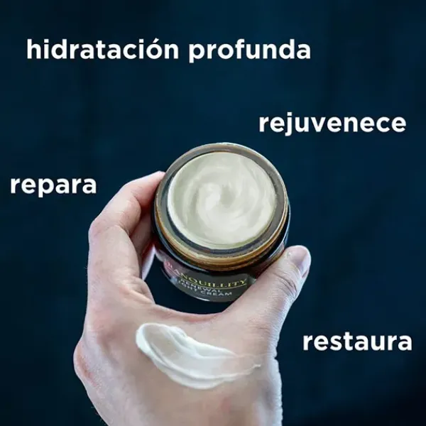 Gracias a la combinación de aceites esenciales de sándalo, rosa mosqueta y bergamota, esta crema no solo potencia la restauración celular sino que también calma la mente, ayudando a desconectar del estrés diario y favoreciendo un descanso reparador.
