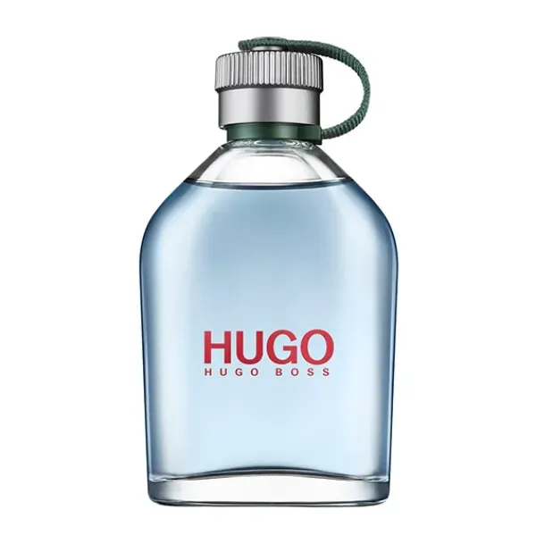 Una fragancia optimista para un alma liberada, Hugo Man que se presenta en un elegante frasco con una tapa con cinta, está diseñada para hombres en movimiento.