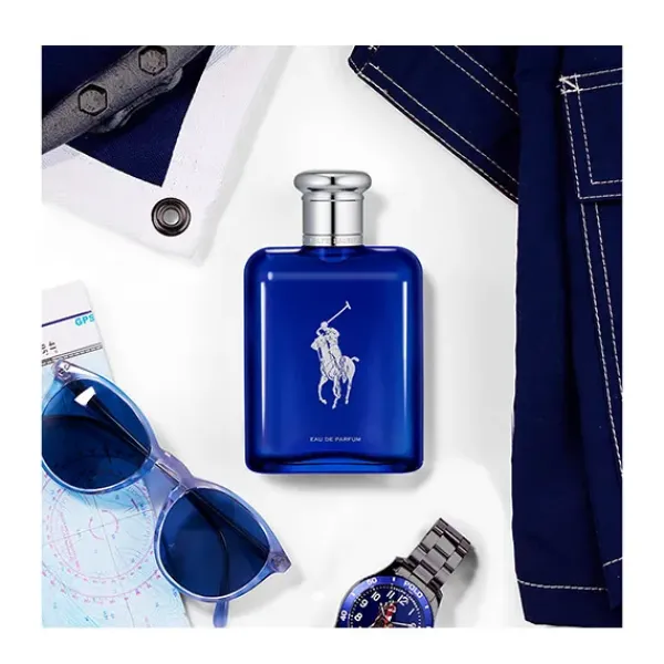 La fragancia Polo Blue Eau de Parfum está compuesta por ingredientes que personifican la elegancia y la sofisticación. La bergamota posee un carácter fresco y cítrico que le da energía al jugo y se mezcla a la perfección con el melón fresco que añade dinamismo y un toque adictivo. El acorde de lirio azul aporta una nota sofisticada pero moderna, dejando una huella sensual en la piel. Las texturas del vetiver y de la madera seca complementan la icónica gamuza lavada otorgando a la fragancia una firma masculina y elegante.