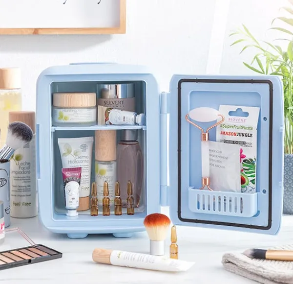 La mini nevera para cosméticos Frecos InnovaGoods es perfecta para mantener refrigerados y en condiciones óptimas gran variedad de productos cosméticos, como cremas, mascarillas y ampollas faciales, sérums, contornos de ojos, cremas corporales, brumas y sprays faciales, rodillos y piedras, productos de belleza orgánicos con ingredientes naturales, etc. Su función frío también es ideal para refrigerar bebidas y refrescos, medicamentos, etc.
