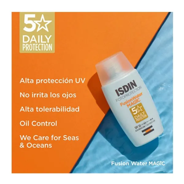 - We care for seas & oceans. ISDIN está comprometido con proyectos para la regeneración de mares y océanos. Y es por ello, que este año por cada botella vendida de Fusion Water Magic vaciada en todo el mundo, ISDIN recuperará su peso en residuo plástico del mar Mediterráneo.