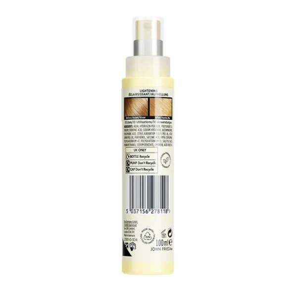 Ilumina los tonos rubios hasta dos tonos con este Spray Aclarante para el cabello.