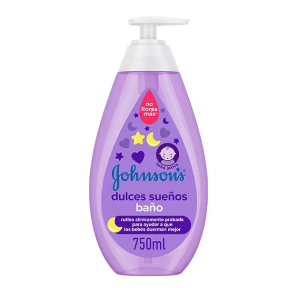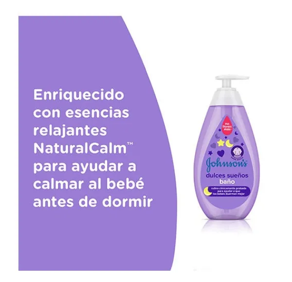 El Gel de Baño Dulces Sueños de Johnson’s Baby para Niños y Bebés ayuda a calmar al bebé antes de dormir, ya que está enriquecido con esencias relajantes NaturalCalm.