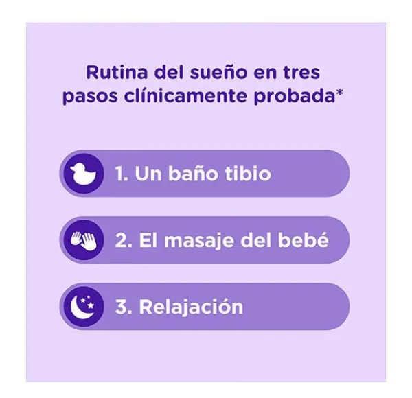 Este producto limpia suavemente la suciedad y las impurezas de la piel al mismo tiempo que la protege de la sequedad y su fórmula está clínicamente probada para ayudar a tu bebé a dormir.