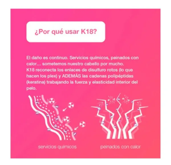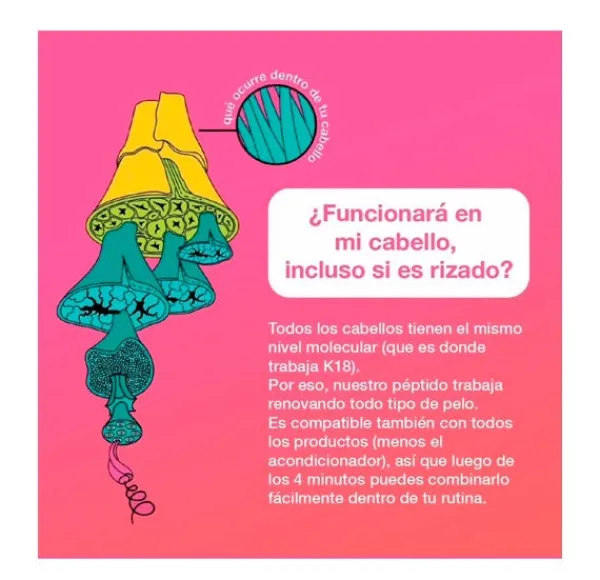 – Funciona en todo tipo de cabello : Debido a que K18 HairScience™ funciona a nivel molecular, este producto es efectivo en todo tipo de cabello.
