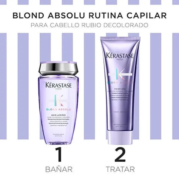 • Bain Blond Lumière, 250 ml Un champú hidratante para todo tipo de rubio. El cabello queda 8 veces más brillante y 16 veces más fuerte