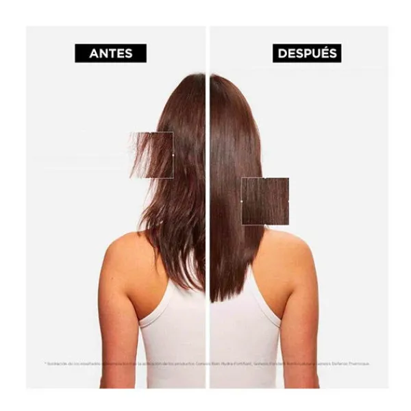 Su fórmula fortalece las zonas del cabello más debilitado, proporcionando una textura uniforme a la fibra, que potencia la suavidad, brillo y ligereza.