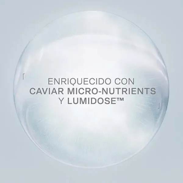 Su innovadora fórmula incluye Caviar Micro-Nutrients, un péptido de alto rendimiento y un 5 % de niacinamida, favoreciendo la renovación diaria de la piel y reduciendo la apariencia de manchas oscuras y marcas de acné. Este gel acuoso y luminoso, de textura ligera, se aplica y absorbe con facilidad, dejando un aspecto inmediatamente más liso y radiante. Con el tiempo, la piel se ve más uniforme, luminosa y visiblemente reafirmada.