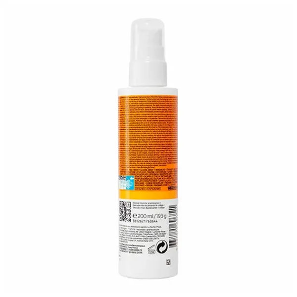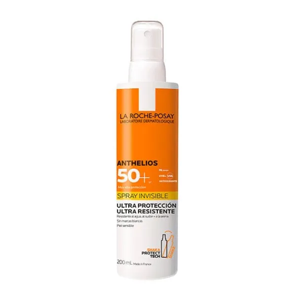 Anthelios Spray Invisible spf50+ es un protector solar de cuerpo de muy alta protección de amplio espectro UVA/UVB. Ayuda a prevenir el estrés oxidativo derivado de la exposición a los rayos infrarrojos y a la polución.