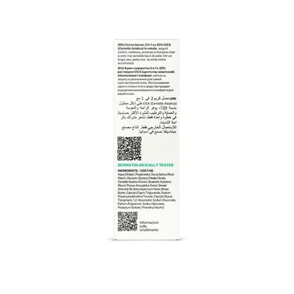 Sérum Crema 2 en 1 con cica (Centella Asiatica) al 20% en solución, ayuda a calmar las rojeces y a proteger las pieles más sensibles, al mismo tiempo que hidrata y aporta confort a tu rostro.