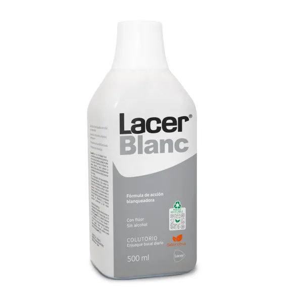 Lacerblanc es un enjuague bucal de uso diario que devuelve a los dientes su color natural, brillo y suavidad sin dañar el esmalte. Evita la formación de placa bacteriana y la acumulación de sarro, previene la aparición de caries y sensibilidad dental, además de incorporar un efecto protector de encías.