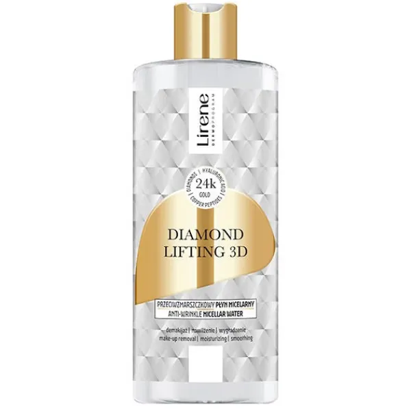 Agua micelar antiarrugas para limpiar el rostro con oro 24k, diamantes, péptidos de cobre y ácido hialurónico.