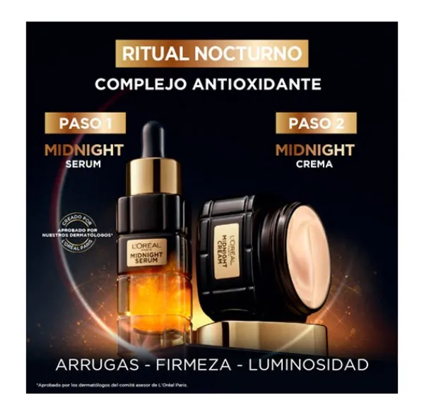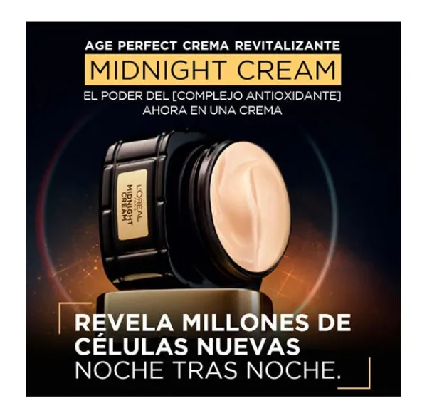 La nueva crema midnight antiedad de la gama Age Perfect Renacimiento Celular, con un complejo antioxidante de Vitamina E (antioxidante esencial que se encuentra naturalmente en la piel, y del cual el nivel disminuye durante el día a causa de las agresiones externas) y Neohespiridina (antioxidante extraído de la naranja amarga, siguiendo un proceso de química verde).