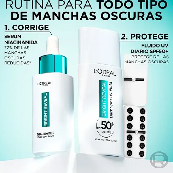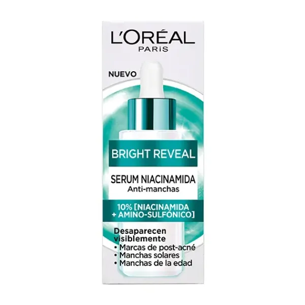 Bright Reveal Serum Niacinamida Anti-Manchas de L’Oréal Paris para recuperar la uniformidad de tu piel.