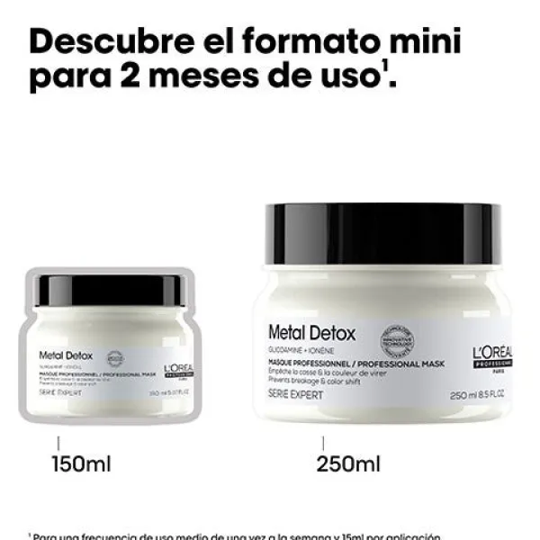 Descubre la Mascarilla Metal Detox de L’Oréal Professionnel para cabello medio a grueso, diseñada especialmente para cabello dañado, coloreado y decolorado.